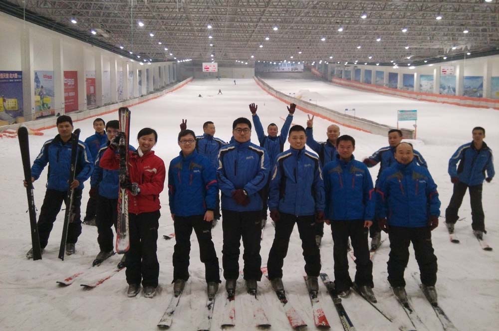 到了目的地,在導游的安排下,大家直奔紹興喬波冰雪世界,換上雪服,帶上雪板和雪鞋,由于都是新手,基本上是靠摔跤來完成剎車動作,雖說雪場寒冷,但是大家的熱情絲毫不減。