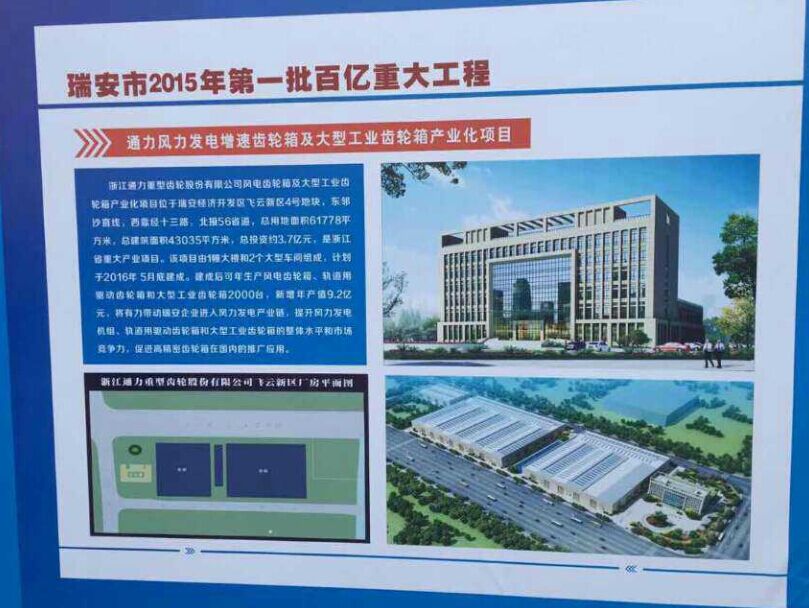 通力風(fēng)電齒輪箱及大型重載齒輪箱產(chǎn)業(yè)化項目位于瑞安經(jīng)濟開發(fā)區(qū)飛云新區(qū)4號地塊,總用地116畝,是瑞安市百億投資重大項目之一,是浙江省重大產(chǎn)業(yè)項目。該項目建成后用于生產(chǎn)風(fēng)電齒輪箱、軌道用驅(qū)動齒輪箱和大型重載齒輪箱,該項目的建設(shè)能夠提升通力公司的技術(shù)創(chuàng)新能力和市場競爭力,促進公司高精密齒輪箱在國內(nèi)的推廣應(yīng)用。