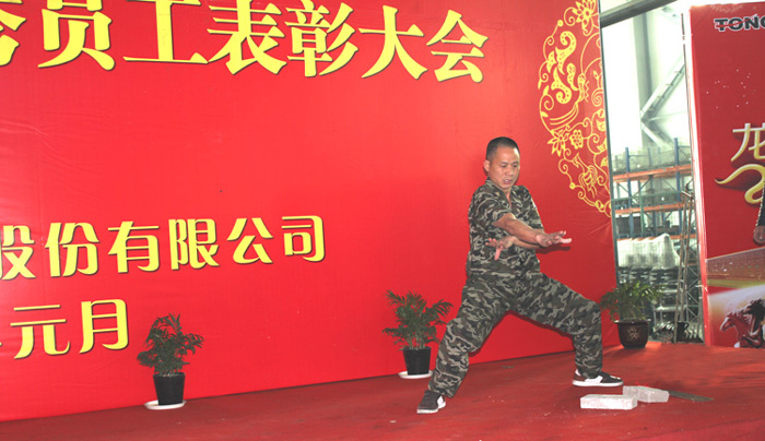 今年公司自編自排的文藝節(jié)目讓大家在盡情享受美味佳肴的同時,大飽眼福。獎項豐富的抽獎環(huán)節(jié)讓現(xiàn)場員工激動不已。銷售部激情四射的大合唱《兄弟無數(shù)》、動感美妙的《舞蹈》、動人心魄的硬氣功表演,流行勁爆的歌曲《最炫名族風(fēng)》將大會推向了高潮,最后酒會在溫馨感動的《今夜舞起來》中圓滿結(jié)束。